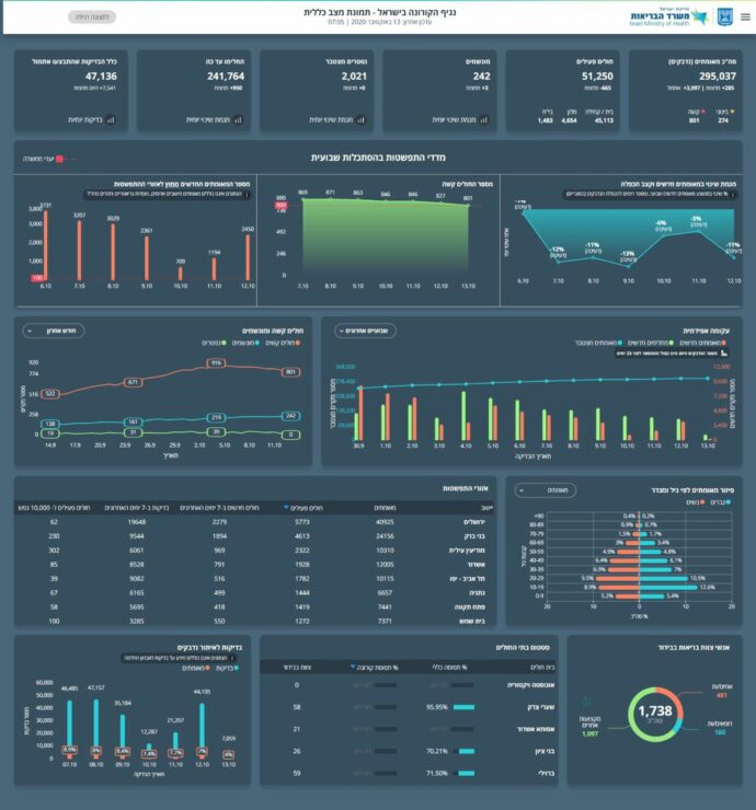 משרד הבריאות מעדכן על 3,097 מאומתים חדשים אתמול (12.10), מתוך 47,136 תוצאות בדיקות שהתקבלו – 7% מהנבדקים חיוביים.