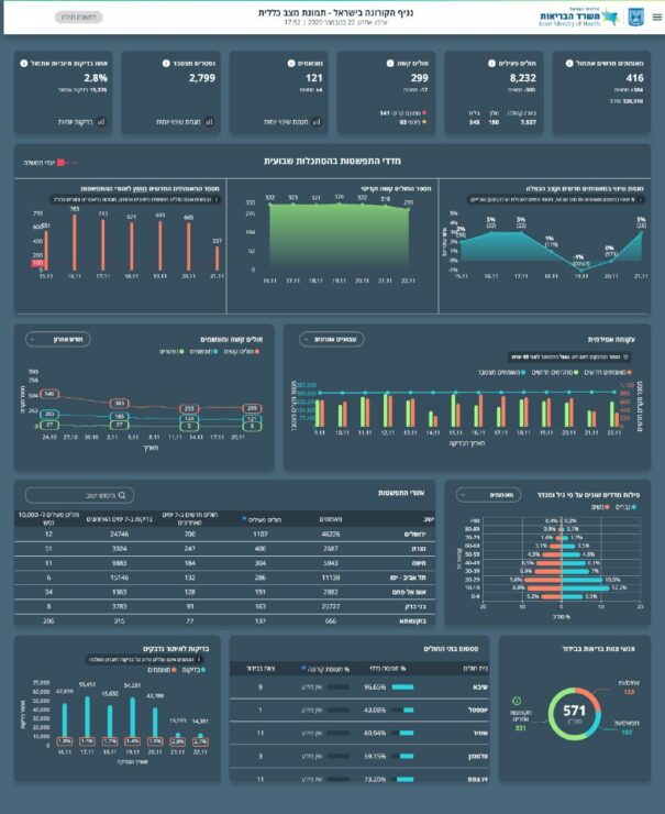 תמונת מצב עדכנית: 416 מאומתים חדשים אתמול (21.11), מתוך 15,376 תוצאות בדיקות שהתקבלו – אחוז הבדיקות החיוביות עומד על 2.8%.