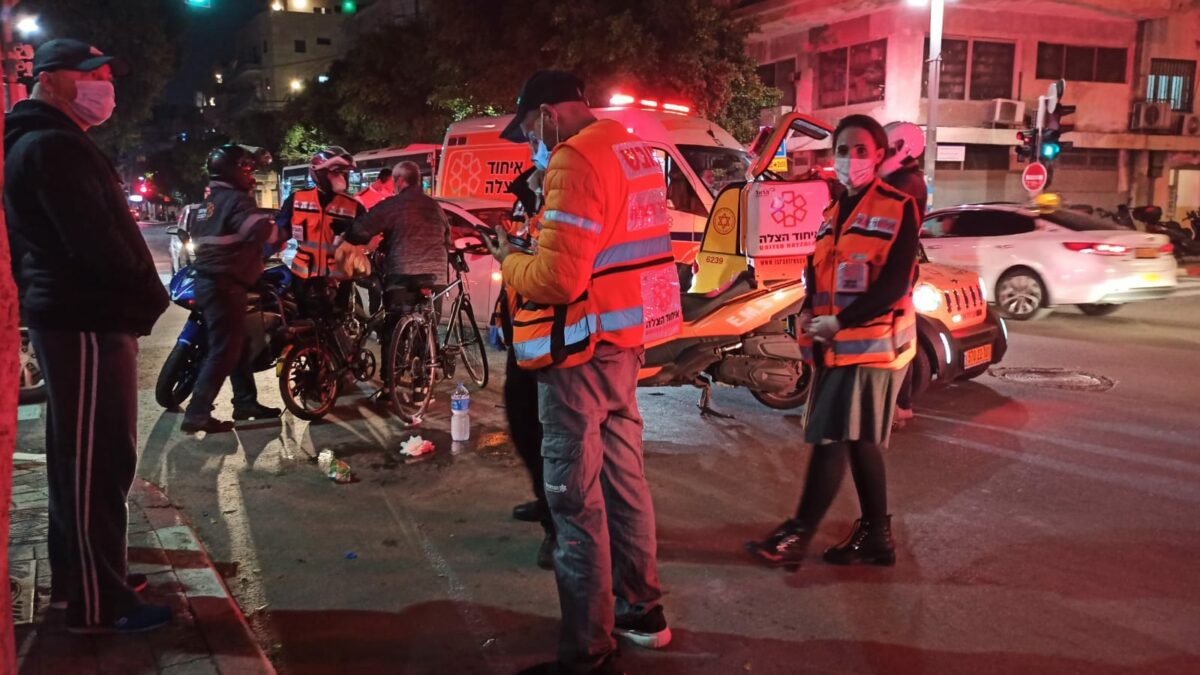 צוותי רפואה העניקו סיוע ראשוני לרוכב אופניים חשמליים כבן 40 שנפצע בינוני ברחוב פרנקל בתל אביב.