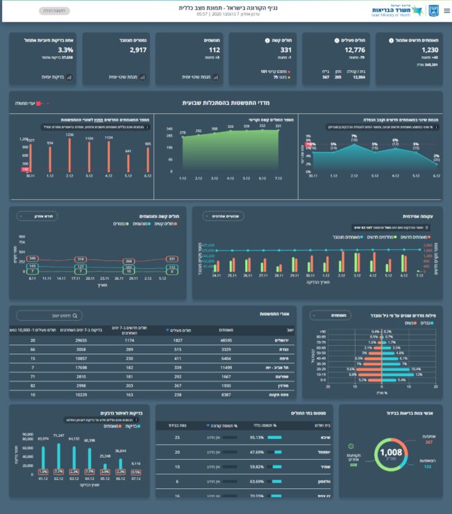 משרד הבריאות מעדכן על 1,230 מאומתים חדשים אתמול (6.12), מתוך 37,638 תוצאות בדיקות שהתקבלו – 3.3% מהנבדקים חיוביים.