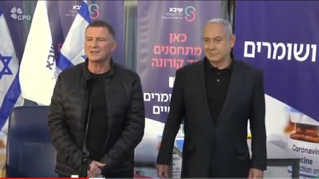 ראש הממשלה בנימין נתניהו ושר הבריאות יולי אדלשטיין התחסנו הראשונים בישראל נגד נגיף הקורונה, במרכז הרפואי ״שיבא״ תל השומר. בכך היה ראש הממשלה נתניהו מהמנהיגים הראשונים בעולם שהתחסן נגד נגיף הקורונה: ״זריקה קטנה לאדם, צעד גדול לבריאות של כולנו״.