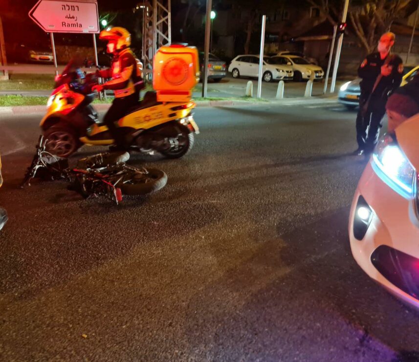בשעה 23:06 התקבל דיווח על רוכב אופניים שנפגע מאופנוע, ברחוב ירושלים פינת הוותיקים בפתח תקוה. חובשים ופראמדיקים של מד"א ואיחוד הצלה העניקו טיפול רפואי ופינו לבי"ח בילינסון, צעיר כבן 20 במצב קשה, מחוסר הכרה, עם פגיעת ראש. רוכב האופנוע נבדק במקום ולא נזקק לפינוי.