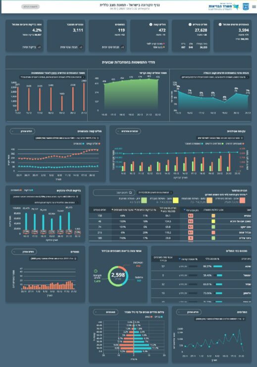 משרד הבריאות מעדכן על 3,594 מאומתים חדשים אתמול (21.12), מתוך 86,857 תוצאות בדיקות שהתקבלו – אחוז הבדיקות החיוביות עומד על 4.2%.