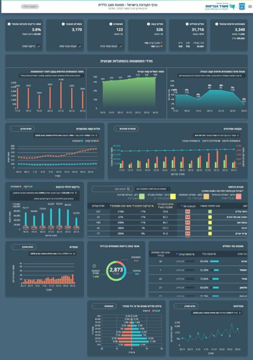 היום, 24.12 נכון לשעה זו: 31,716 חולים פעילים, 3,340 חולים חדשים נוספו ביממה האחרונה ו-1,696 מחצות, 526 במצב קשה שמתוכם 122 מונשמים.