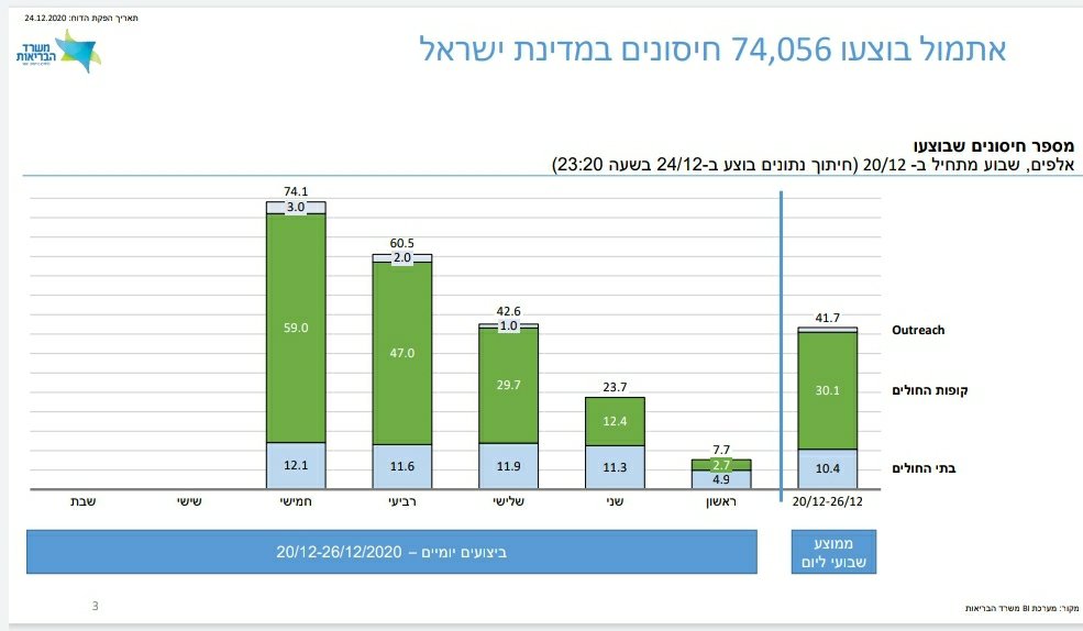 שר הבריאות אדלשטיין: "כמעט 210,000 מחוסנים מקרב בני 60 פלוס, הצוותים הרפואיים ו"מגן אבות ואמהות", מתוכם למעלה מ 74,000 רק מאתמול (!) זוהי רק ההתחלה, נגביר את הקצב בימים הקרובים. אני מודה לעובדי משרד הבריאות, לקופות החולים, לבתי החולים, למד"א ולפיקוד העורף על עבודה מופלאה. בזכותכם 210,000 איש בדרך להיות מוגנים יותר".