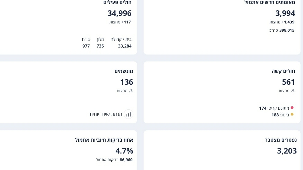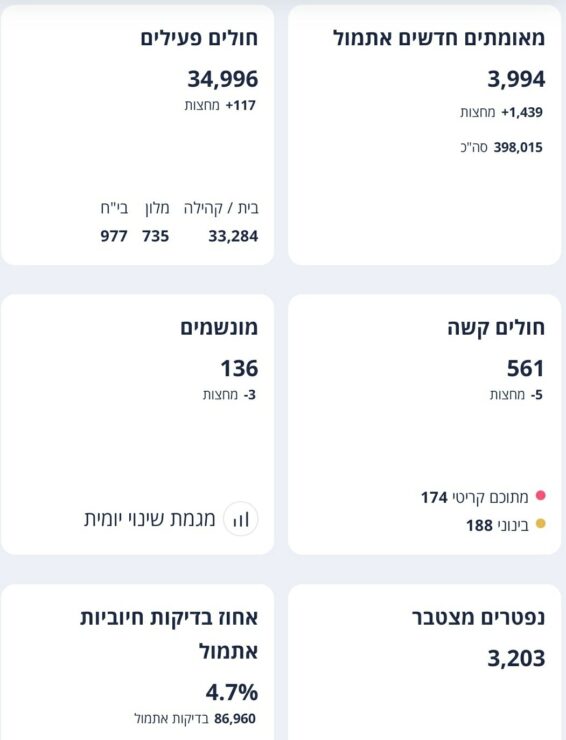 משרד הבריאות: 3,994 נדבקים חדשים אובחנו בקורונה, 561 במצב קשה – 4.7% מהבדיקות חיוביות