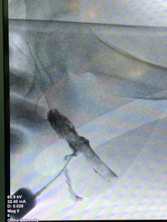 מרגע שהבינו את מקור הזיהום, הפעולה הייתה פשוטה יחסית – דרך פצע החדירה, נשלף הגוף הזר, אותו עיפרון שהיה בגופו של ש' חודשים ארוכים, ולאחר התאוששות קצרה ש' שוחרר לביתו כשצפויה לו החלמה מלאה.