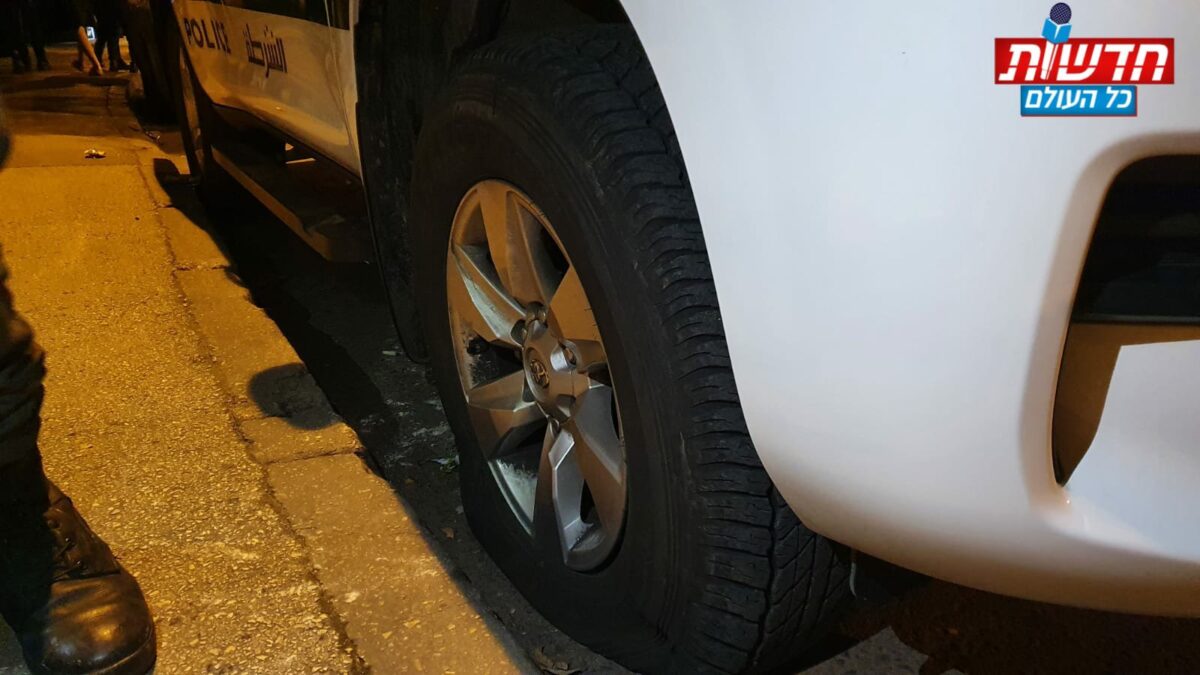 גלגל ניידת מג"ב פונצ'רה בהפגנה בבר אילן, צילום: איתמר כהן, חדשות כל העולם.