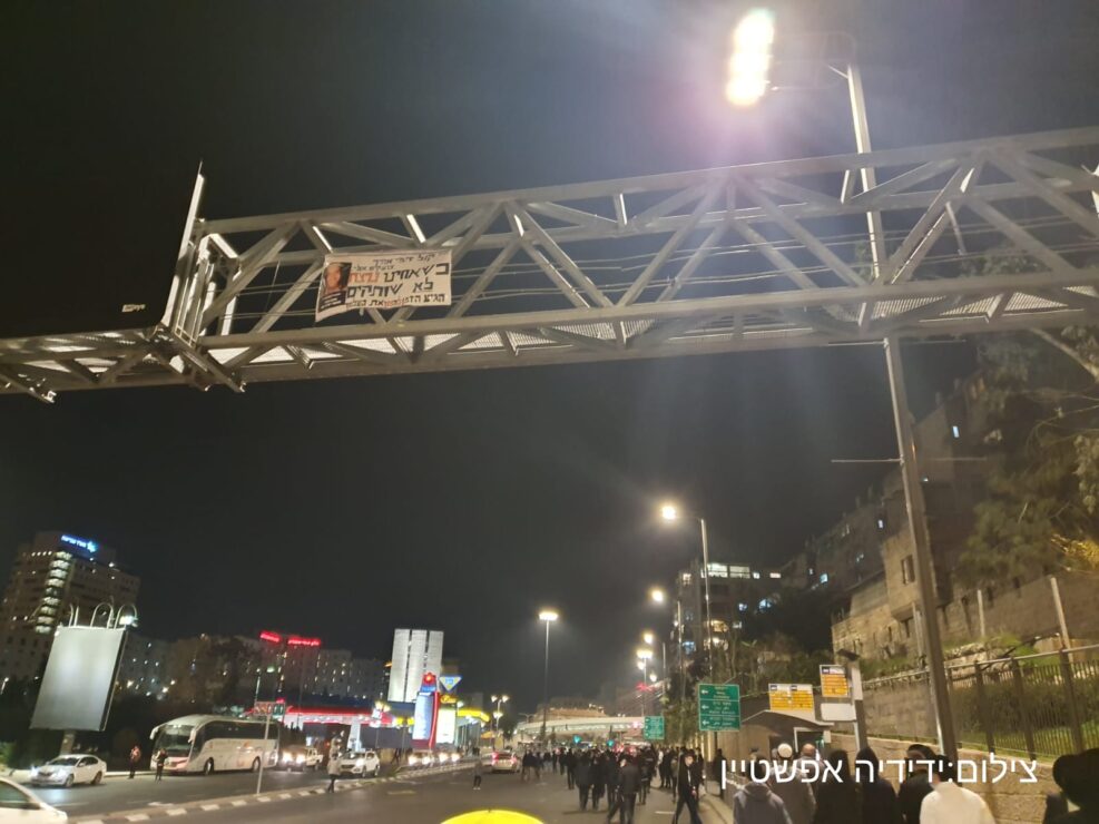 בגשר המיתרים בירושלים מפגינים כ-100 פעילי מחאה וחבריו של אהוביה. המפגינים חוסמים מפעם לפעם את כביש הכניסה לירושלים, שוטרים שנמצאים במקום מפנים את המפגינים למדרכה.