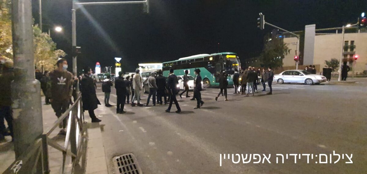 מהמשטרה נמסר כי "אל סמוך לגשר המיתרים בירושלים הגיעו הערב עשרות מפגינים שהחלו בניסיונות לחסום את ציר התנועה בכניסה לעיר מעת לעת תוך הפרת הסדר.
