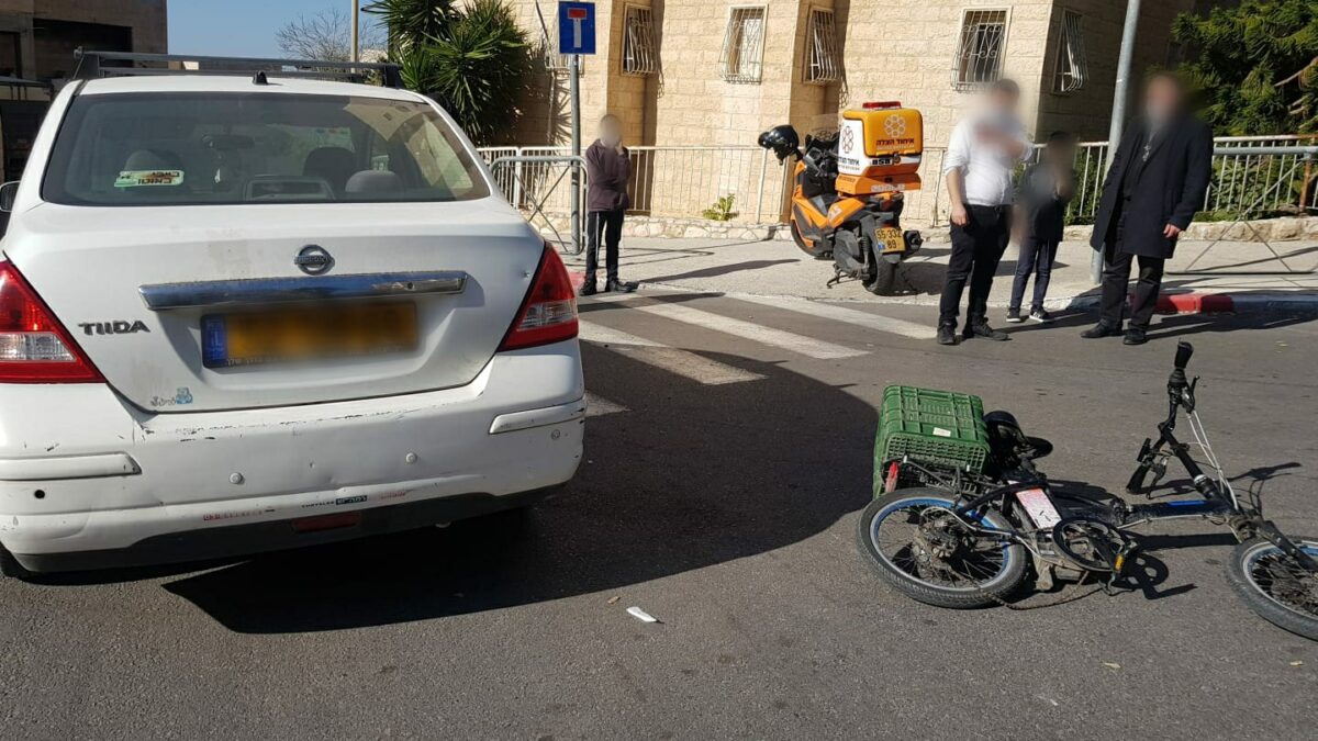 בשעה 09:38 התקבל דיווח על תאונה בין רוכב אופניים חשמליים לרכב פרטי ברחוב הרב ש. שאולזון בירושלים. חובשים ופראמדיקים של מד"א ואיחוד הצלה העניקו טיפול רפואי ופיני לבי"ח הדסה עין כרם צעיר כבן 20 במצב בינוני עם חבלת ראש.