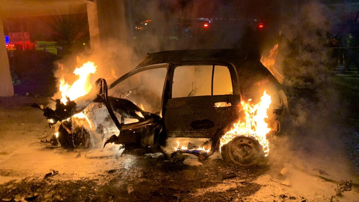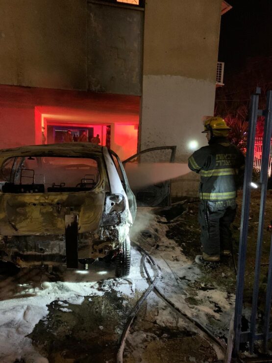 כוחות הכיבוי בשלבי כיבוי כרגע על מנת לזכות את הרכב מלכודים בתוכו. כוחות משטרה בדרכם למקום.