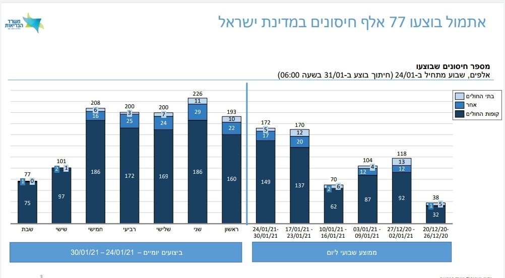 משרד הסריאות מעדכן על 2,596 מאומתים חדשים אתמול (30.1), מתוך 26,817 תוצאות בדיקות שהתקבלו.