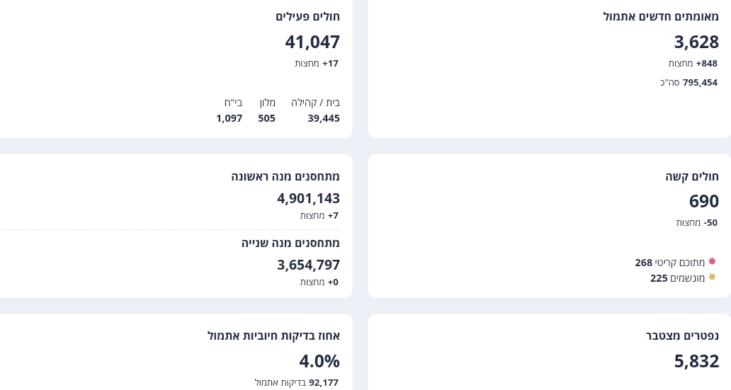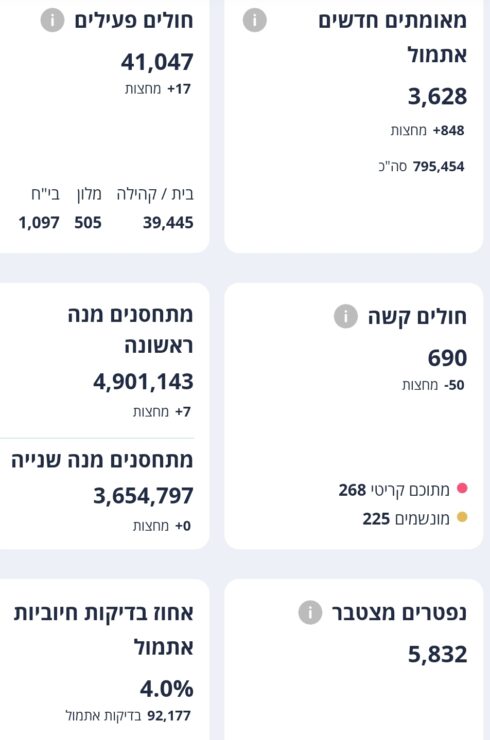 משרד הבריאות מעדכן 3,628 חולים אובחנו ביממה האחרונה ו-848 מחצות – 4% מהנבדקים חיוביים.