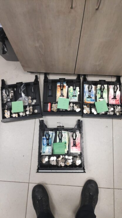 כוחות משטרה החלו לערוך סריקות בשטח שבמהלכם איתרו מתחם שבו התקיימה מסיבה בהשתתפות עשרות. במקום נתפס ציוד הגברה, ציוד שיועד למסיבה וקופות שהכילו אלפי שקלים.