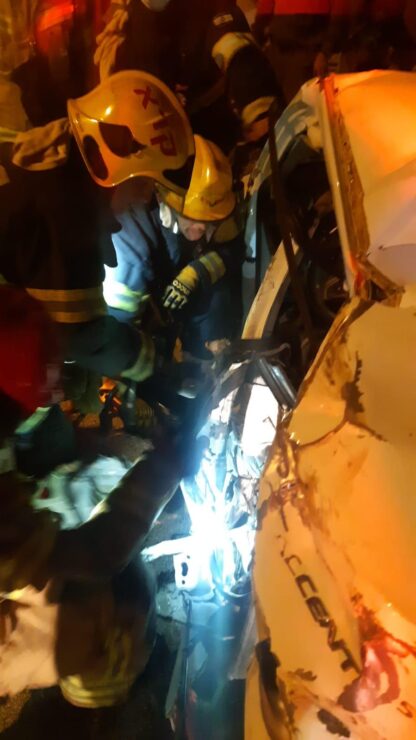כשהגענו למקום זיהינו שהמשאית עפה לתעלה וכי יש לכוד ברכב הפרטי. לוחמי האש החלו בפעולות חילוץ באמצעות כלים הידראוליים וביצעו סריקה לשלילת לכודים במשאית.