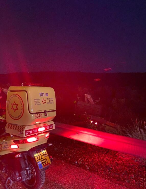 חובש רפואת חירום במד"א ינון לוי סיפר: "כשהגעתי למקום ראיתי בשול הדרך את הרכב שהיה עם פגיעות פח קשות בחלקו האחורי ואת המשאית בואדי בצד הדרך. נהג המשאית שנפגע באורח קל ישב בשול הכביש ונהג הרכב הפרטי שנלכד ברכבו סבל מחבלות בגפיים. בסיוע כוחות הצבא והכיבוי חילצנו אותו מהרכב, הענקנו לפצועים טיפול רפואי ראשוני בשטח והם פונו במצב יציב לבית חולים."