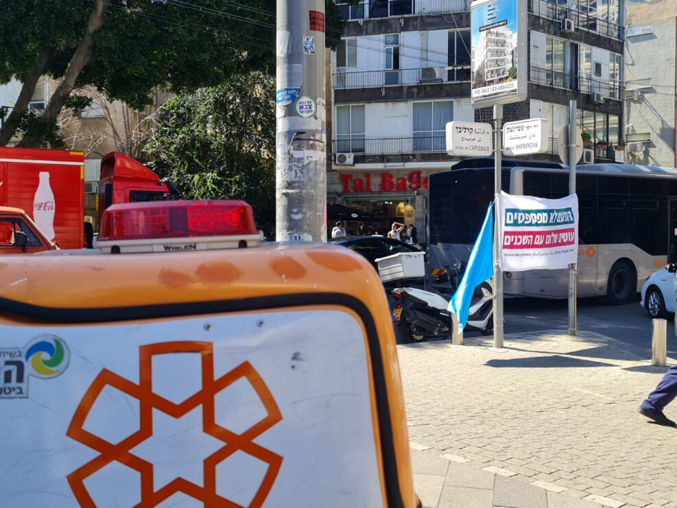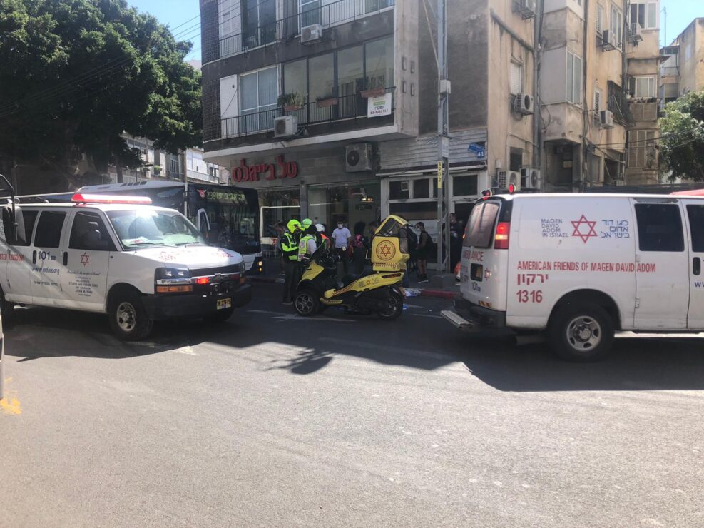 בשעה 12:46 התקבל דיווח על 2 הולכי רגל שנפגעו מאוטובוס בזירת הפגנה ברחוב קרליבך בתל אביב. חובשים ופראמדיקים של מד"א ואיחוד הצלה העניקו טיפול רפואי ופינו לבי"ח איכילוב גבר כבן 60 במצב קשה עם חבלת ראש. פצועה נוספת פונתה לביה"ח באופן עצמאי במצב קל עד בינוני.