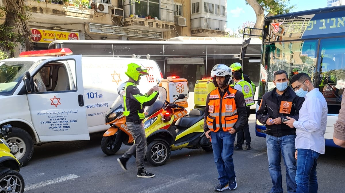 צוותי רפואה העניקו סיוע ראשוני לגבר ואשה בגילאי 60-70 שנפגעו מאוטובוס ברחוב קרליבך בתל אביב.