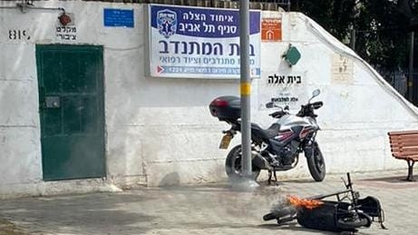(בתיעוד מזירת האירוע בתל אביב ניתן לראות את הקורקינט עדיין עולה באש לאחר שהנפגעים חולצו מביתם – צילום: דוברות איחוד הצלה)