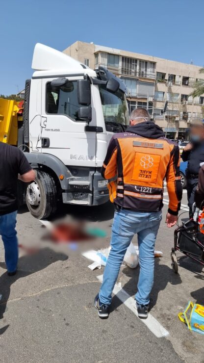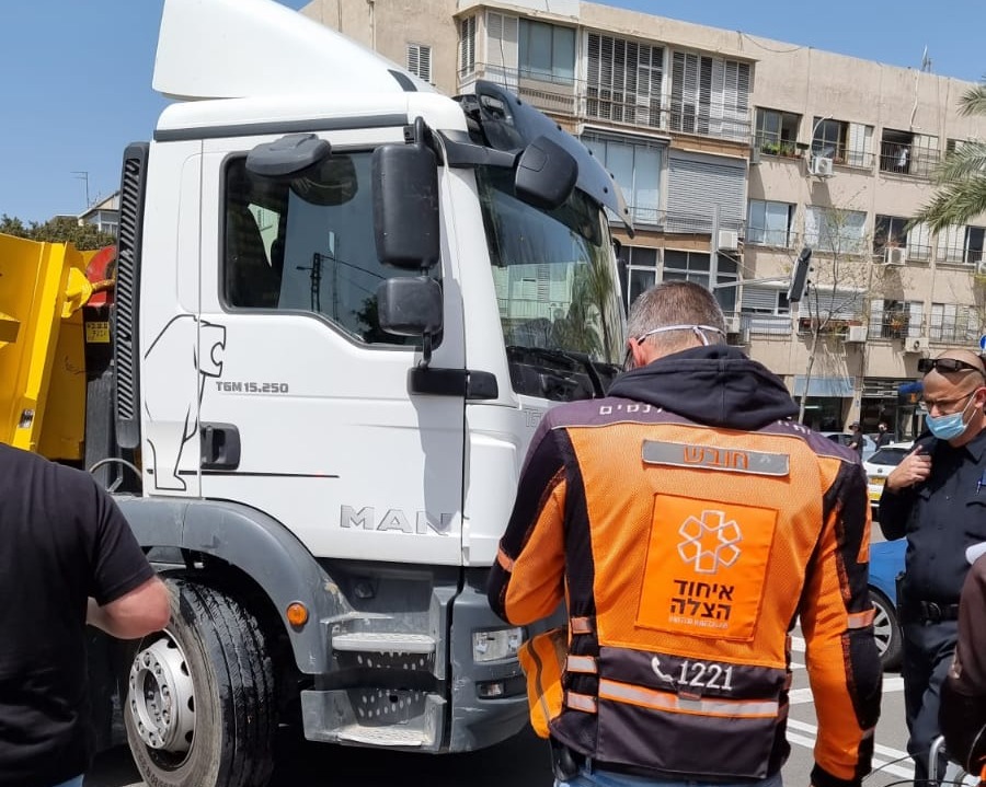 עמנואל איצקוביץ חובש איחוד הצלה מסר: "מדובר בהולכת רגל כבת 80 שנפגעה ממשאית ובעקבות כך היא נפצעה באורח קשה. בסיוע חובשים נוספים הענקנו לה סיוע ראשוני בזירה ולאחר מכן היא פונתה לבית החולים איכילוב".