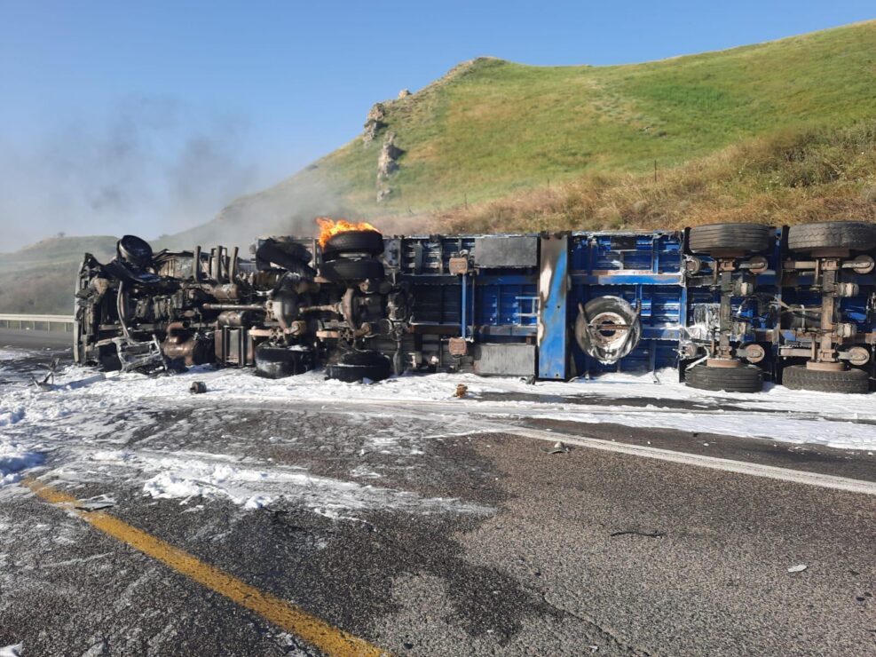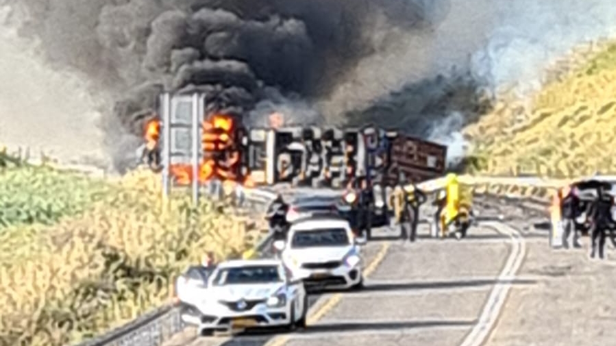 בשעה 07:32 התקבל דיווח על תאונה קשה ומשאית שעולה באש בכביש 90 ממנחמיה לבית שאן.