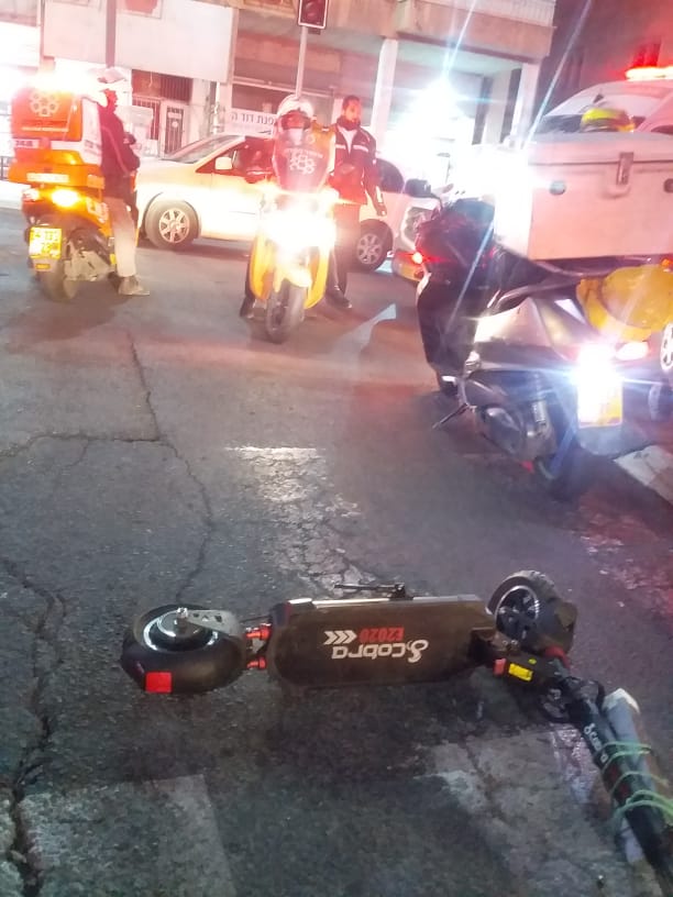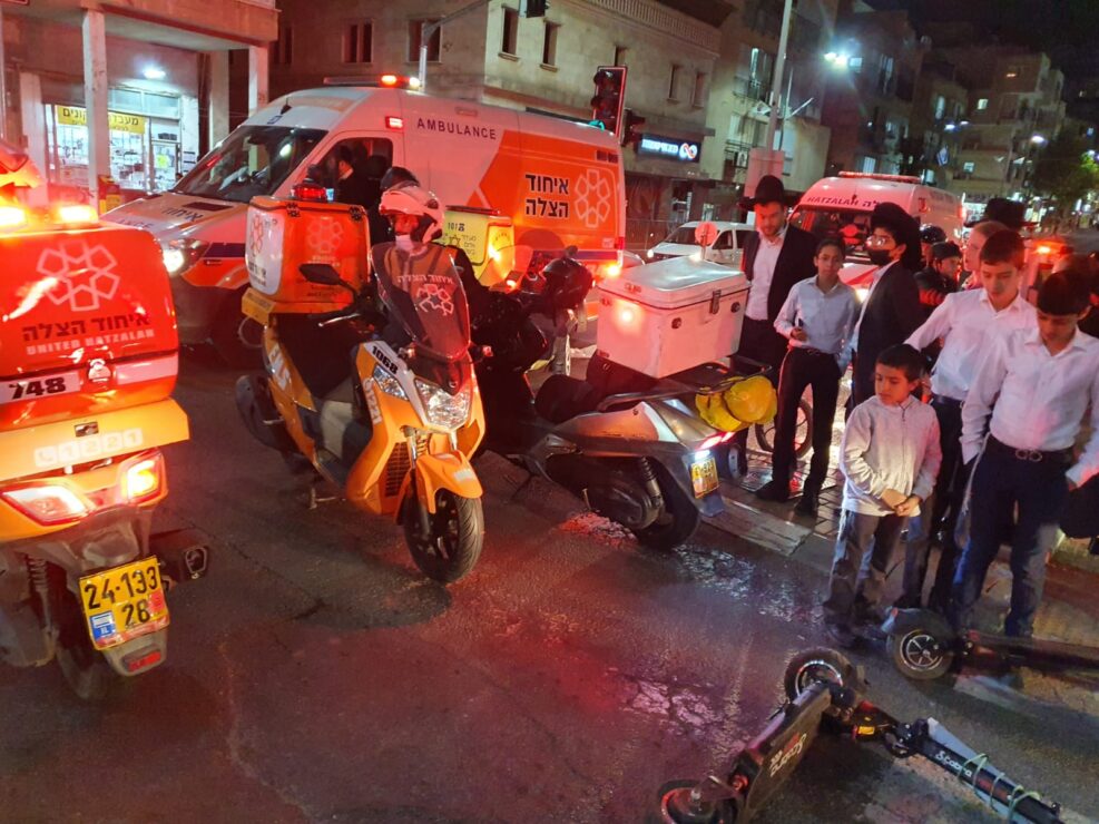 ובסמוך לשעה 21:10, צוות אמבולנס של איחוד הצלה העניקו סיוע ראשוני לשני נפגעים קל ברחוב ירושלים בבני ברק. מדובר בתאונה עם מעורבות רכב וקורקינט חשמלי עליו נסעו שני נערים, אחד מהנערים כבן 18 שנפצע קל עד בינוני פונה באמבולנס של איחוד הצלה למרכז הרפואי שיבא בתל השומר.