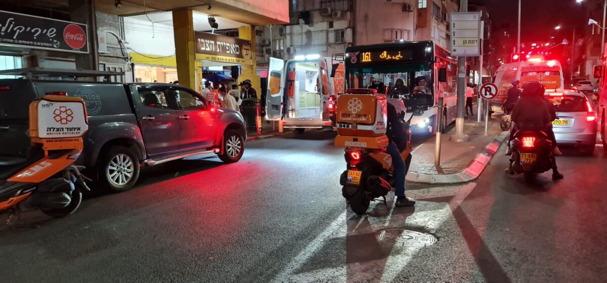ובסמוך לשעה 19:59, צוות אמבולנס של איחוד הצלה העניקו סיוע ראשוני להולך רגל שלדברי עוברי אורח נפגע מאופניים חשמליים ברחוב ירושלים בבני ברק. הנפגע כבן 70 פונה באמבולנס של איחוד הצלה למרכז הרפואי מעייני הישועה במצב קל.