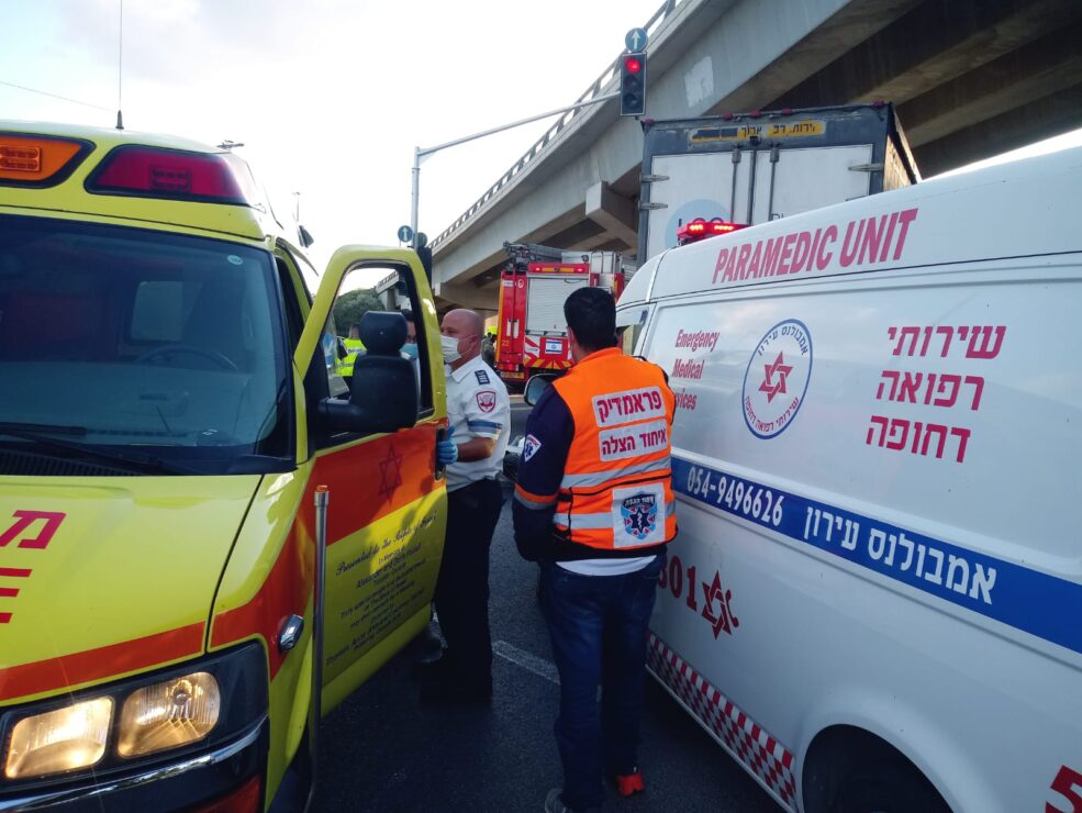 פראמדיק מד"א אורי לזרוביץ וחובש בכיר סארי עלוש סיפרו: "כשהגענו למקום התאונה ראינו את רוכב האופנוע לכוד מתחת למשאית כשהוא מחוסר הכרה וסובל מפגיעה רב מערכתית קשה מאוד. לאחר שכוחות הכיבוי חילצו אותו, ביצענו בו בדיקות רפואיות, הוא היה ללא סימני חיים ונאלצנו לקבוע את מותו במקום."