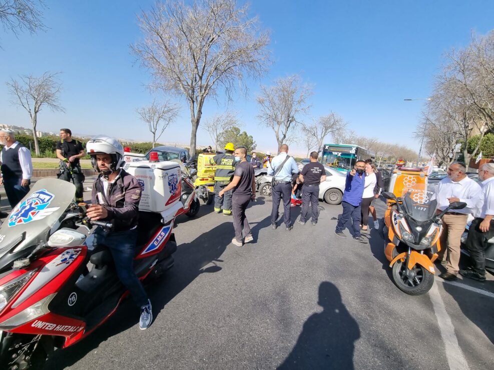 מאיר אקר קמב״ץ זק״א ירושלים שטיפל בזירה: ״מדובר בתאונה קשה עם מעורבות מס׳ כלי רכב והולכת רגל. כשהגענו למקום ראינו את הולכת הרגל שוכבת מחוסרת הכרה בין מספר כלי רכב מעוכים, עם פגיעה רב מערכתית. עוצמת הפגיעה הייתה קשה וקטלנית, פראמדיק מד״א נאלץ לאשר את מותה במקום.״