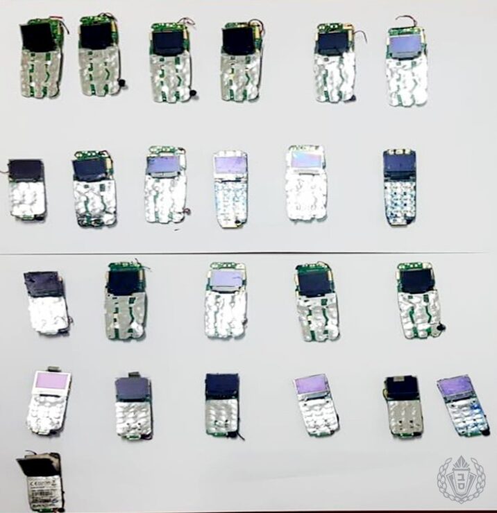 לאחר תשאול נוסף של צוות הסוהרים הודה העצור שהסליק גופים זרים ופלט מגופו 24 מכשירים סלולריים מסוג ׳סרסור׳, 18 כרטיסי סים ו-4 רמקולים.