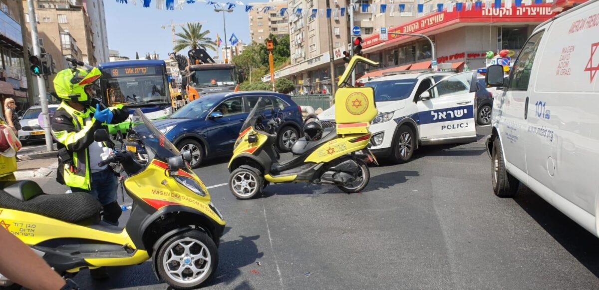 חובשים ופראמדיקים של מד"א העניקו טיפול רפואי ופינו לבי"ח איכילוב גבר כבן 25 במצב בינוני עם חבלות בפלג גופו העליון.