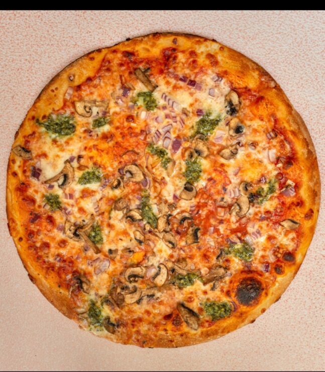פיצה אל-ה טוניסיאן הכוללת אנשובי בצל וצ'ילי לוהט. פיצה תל אביב-יפו עם קוביות בטטה, אקסטרא מוצרלה ואנטיפסטי.